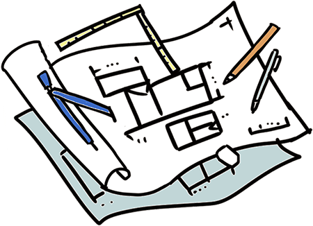 お客様の図面をもとにできあがりのイメージ、ご予算、納期などヒアリングさせていただいたうえで、工場の選定、納期の調整、実製作の確認などすべて賑わい創りの道具やで対応いたします。